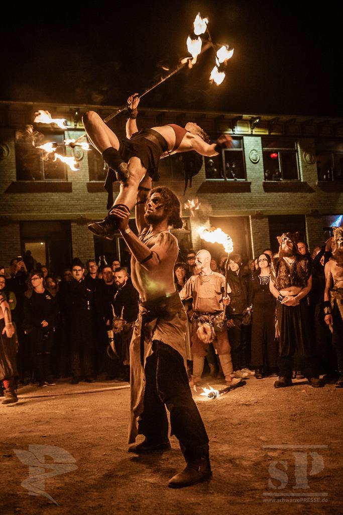 So langsam aber sicher wurde es Zeit für die Lesung in der zweiten Etage der schwarzen Mühle. Das ist ja auch so, egal welchen Weg man zur Treppe in die zweite Etage geht, überall wird man vom Flair der einem umgibt, fasziniert! Die Lesung war sehr gut besucht, selbst der Vorraum von der Treppe aus war sehr schnell belegt. Die Nacht kam langsam und nach dem Sonnenuntergang umgeben der Berge kam die blaue Stunde um den Schleier der Nacht an den dunklen Sternenhimmel zu übergeben. Eine grandiose Feier zu Beltane begann nun. Umhüllt von den Flammen der Feuer, darbietend in einer begeisternden Darstellung der Künstler, ein Traum! Wir genossen über eine Stunde eine fantastische Darbietung, zum Übergang das mächtige Beltanefeuer entzündend.